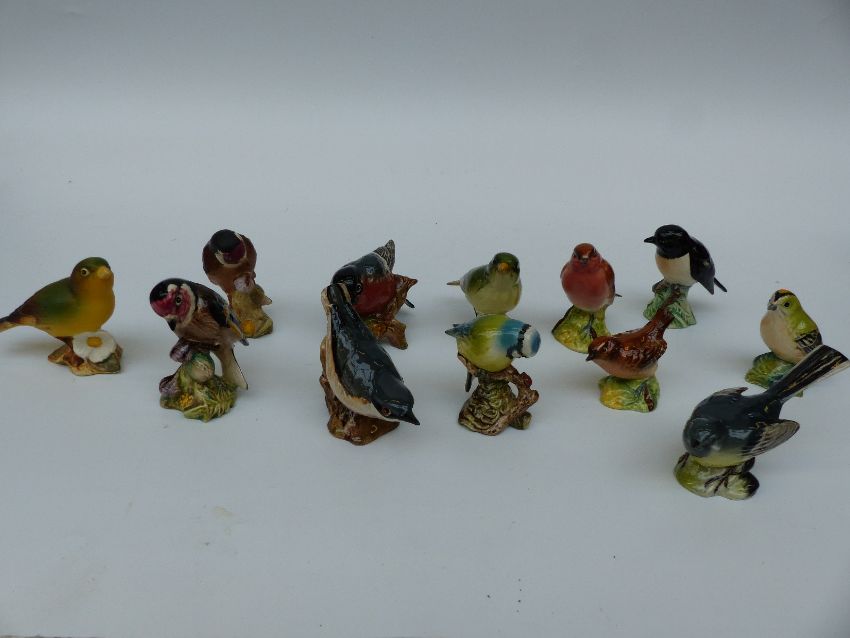 Twelve Beswick birds together with two character jugs - Pied Piper and Merlin