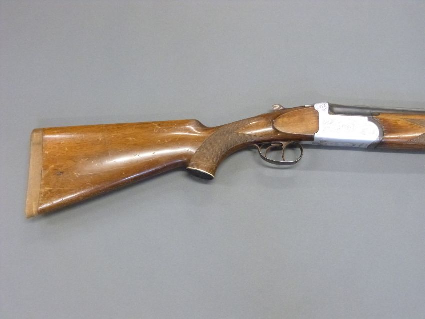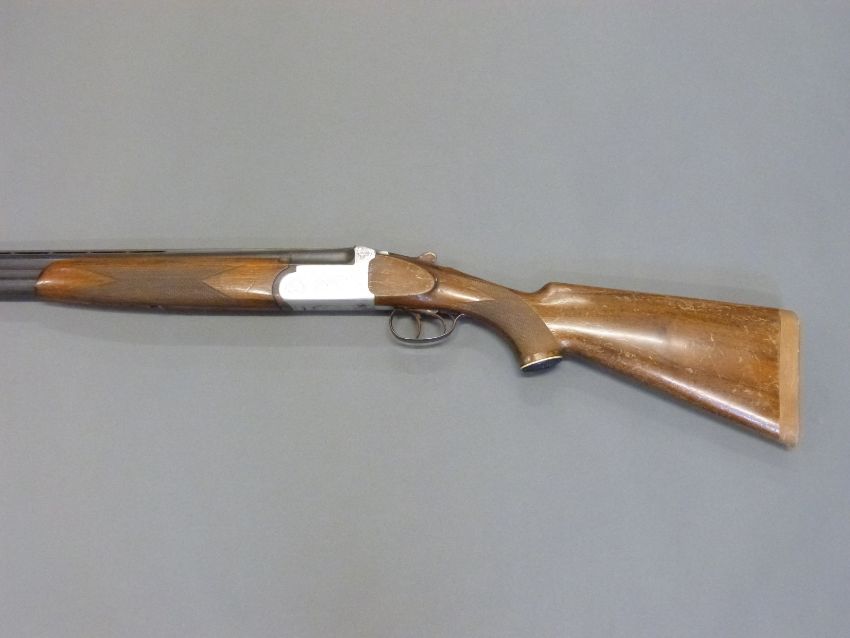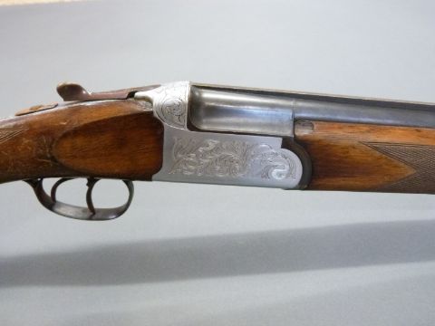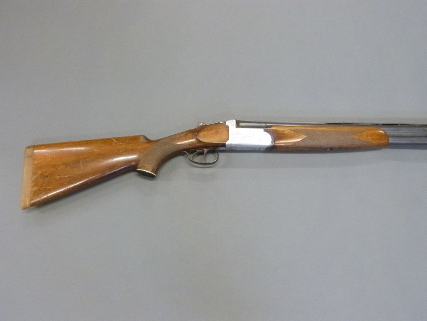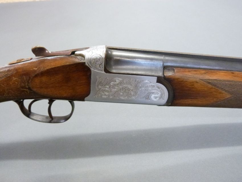 Contento 12 bore over and under shotgun with engraved locks, top plate and top lever, chequered semi-pistol grip and forend, vented top rib, double trigger and 27.5 inch half and unchoked barrels, overall length 114cm, serial number 13206. PLEASE NOTE THAT A VALID RELEVANT FIREARMS/SHOTGUN CERTIFICATE IS REQUIRED TO HANDLE/PURCHASE THIS ITEM.