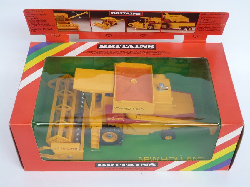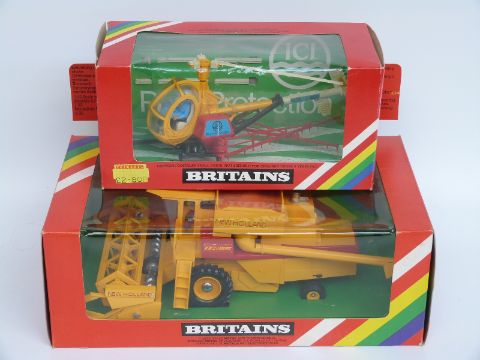Two Britains model farm vehicles New Holland Combine Harvester 9575 and Helicopter Crop Spray 9511, both in original boxes