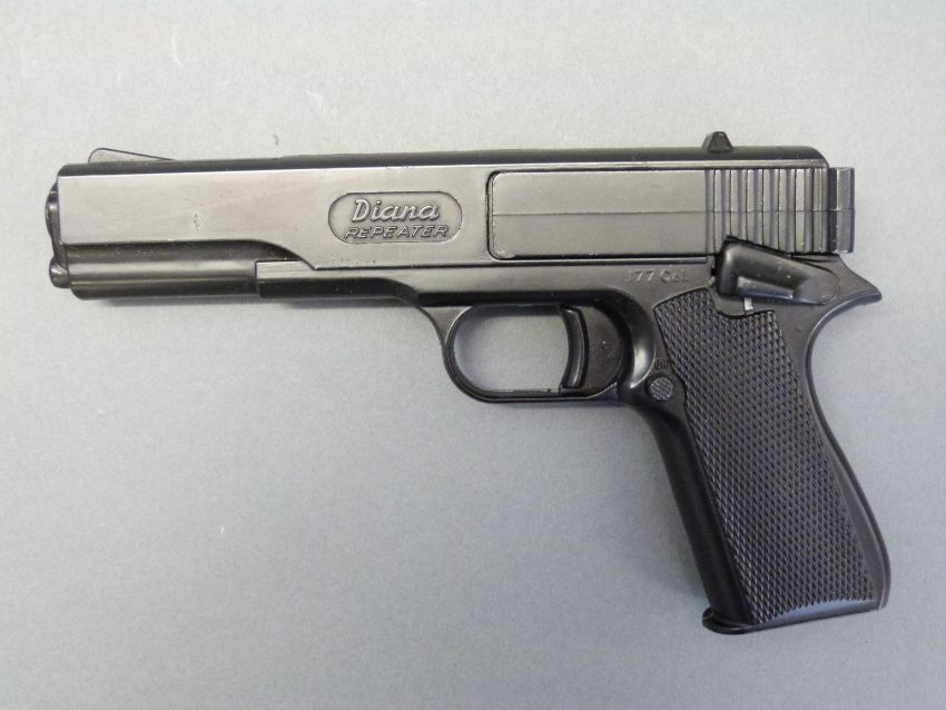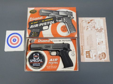 Diana G10 .177 20 shot BB repeater air pistol, NVSN, in original box with instructions
