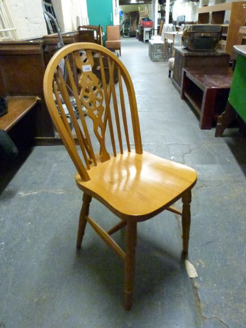 A pine extending table and six chairs, L176 x W91 x H76cm