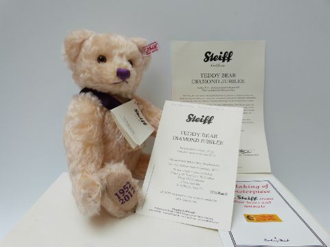 Steiff Diamond Jubilee limited edition mohair teddy bear, in original box with certificate