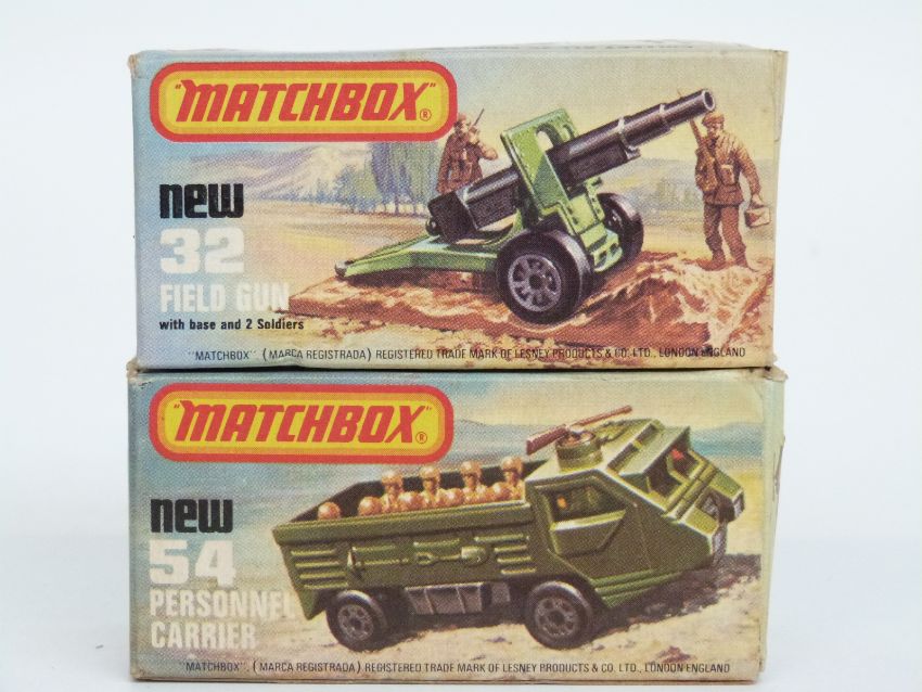 Sixteen Dinky Toys, Britains and Matchbox Lesney diecast model military vehicles including, aircraft, guns etc, some in original boxes