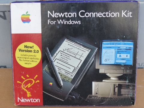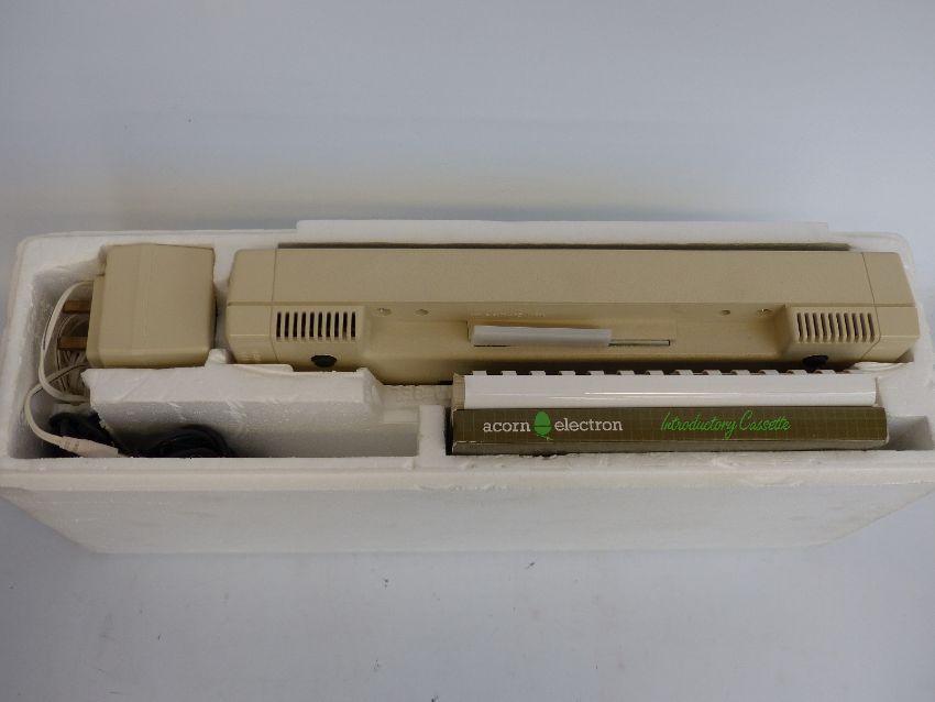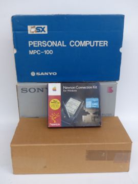 Four vintage computers and accessories comprising Acorn Electrical, Sanyo MSX Personal Computer, Sony MSX Hit Bit HB-75B and Apple Newton Connection Kit for Windows Version 2.0, all in original boxes