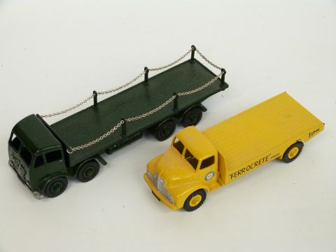 Ten Dinky Toys and Dinky Supertoys diecast model vehicles including Foden flat-bed, Leyland Comet, Berliet, Carrimore car transporter, buses etc