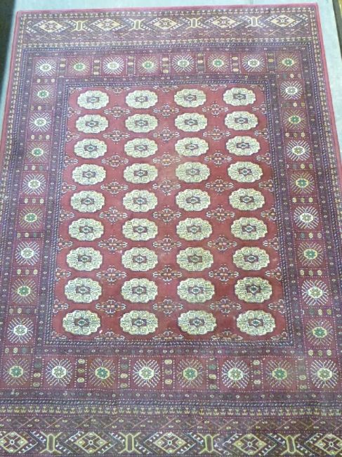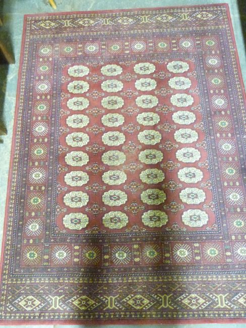 A Turkoman rug with multiple guls on wine ground, 190 x 140cm