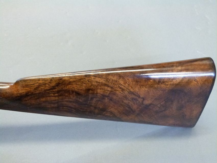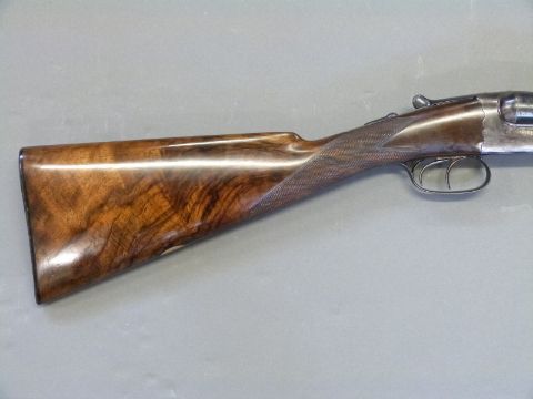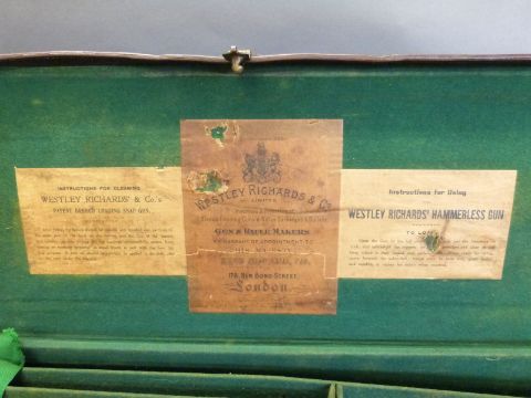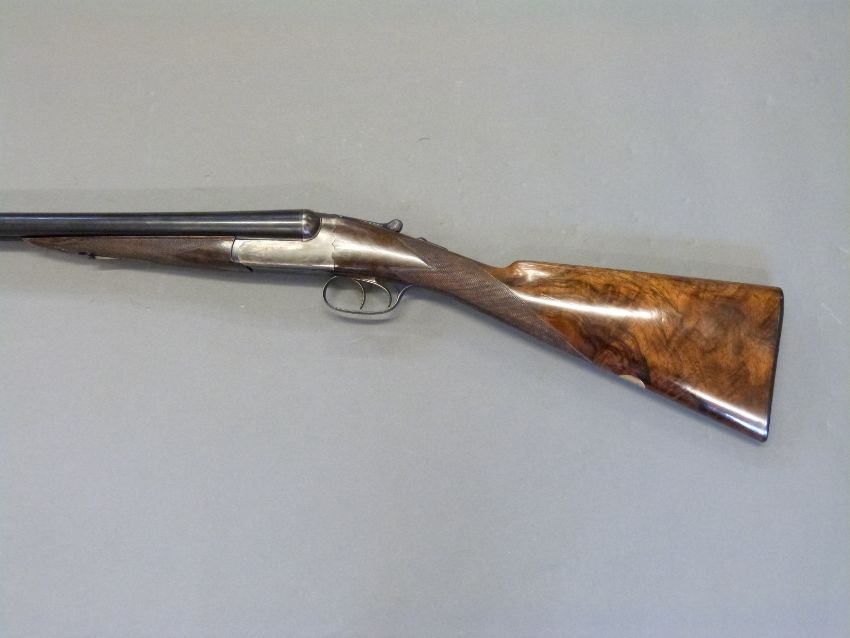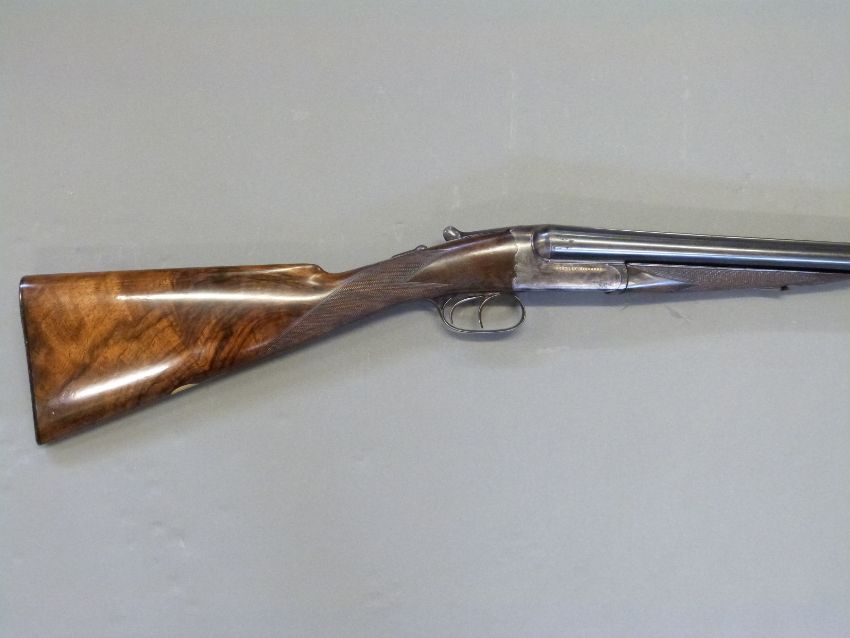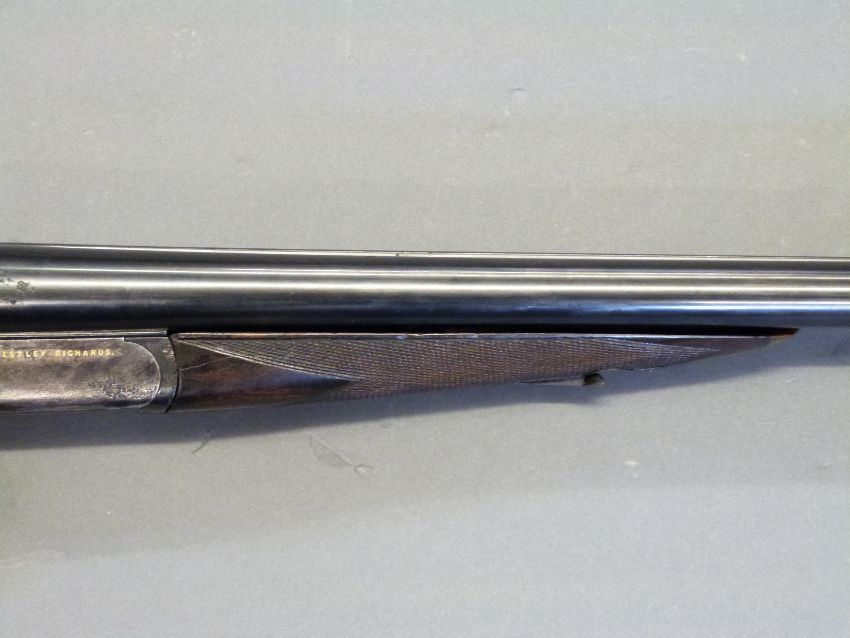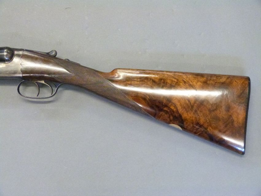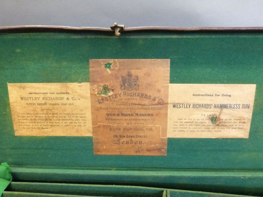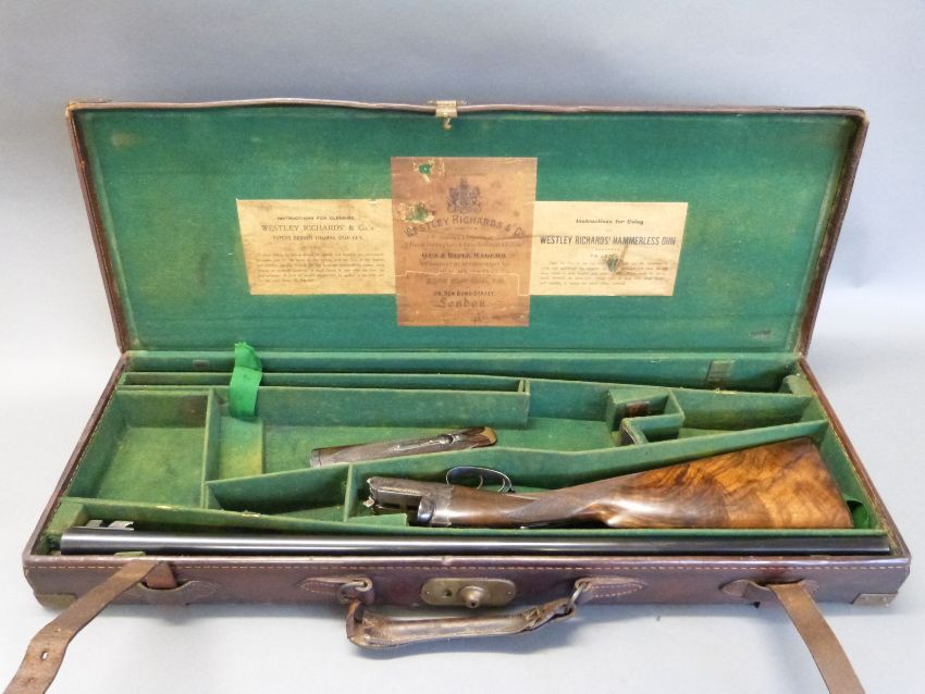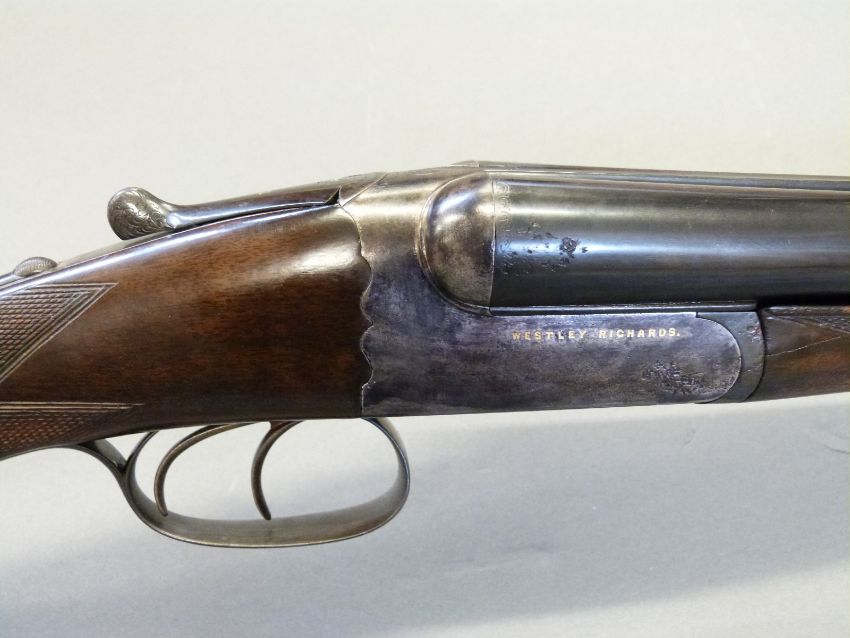 Westley Richards 12 bore 'Gold Name' side by side boxlock ejector shotgun with hand detachable locks, high grade walnut stock inlaid with a gold cartouche, chequered grip, horn tipped forend, engraved top lever inlaid with gold '1', engraved top plate, gold inlaid name and 'safe' marker, 30inch nitro proofed barrels with 2.5inch chambers choked quarter and half engraved 'Westley Richards 178 New Bond St London Gun Makers by Special Appointment to His Majesty King Edward', overall length 117cm, serial number 9109, in original brass bound leather double gun case with original makers labels. PLEASE NOTE THAT A VALID RELEVANT FIREARMS/SHOTGUN CERTIFICATE IS REQUIRED TO HANDLE/PURCHASE THIS ITEM.