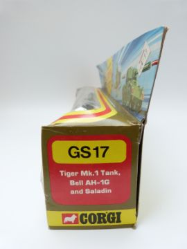 Corgi Toys diecast model gift set 17, Tiger Mk.I Tank Bell AH-1G Helicopter and Saladin Armoured Car GS17, in original box