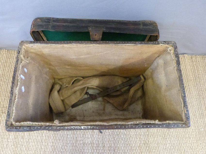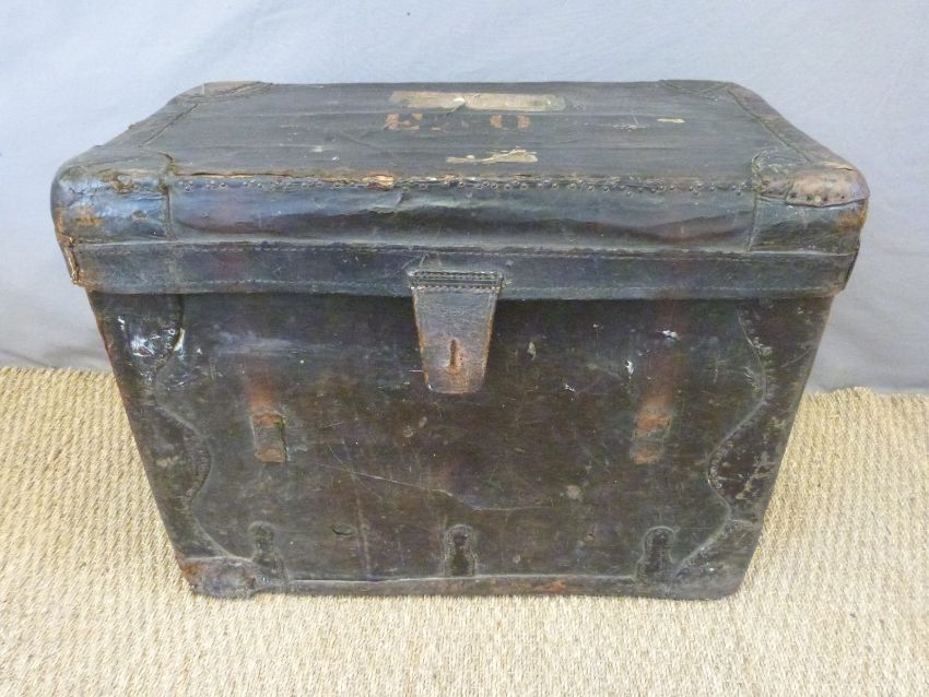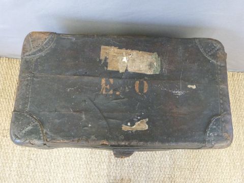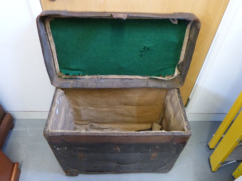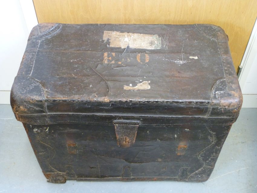 A vintage leather luggage trunk with GWR label, W70 x D38 x H50cm
