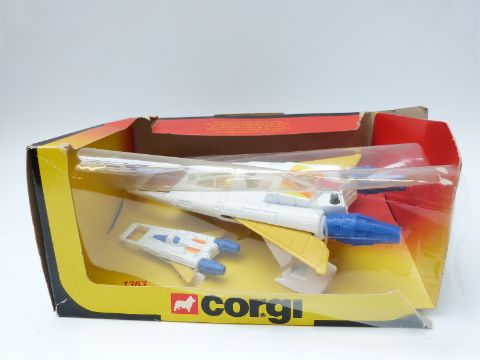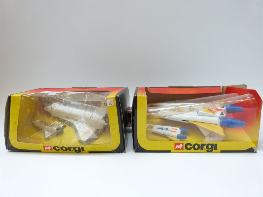 Two Corgi Toys diecast model aircraft sets, Buck Rogers Starfighter 1363 and NASA Space Shuttle 1364, both in original boxes