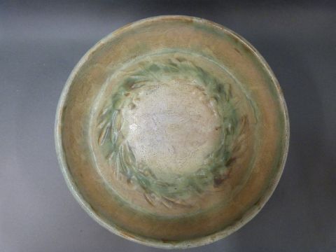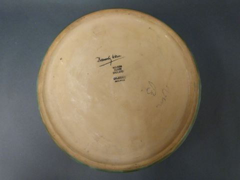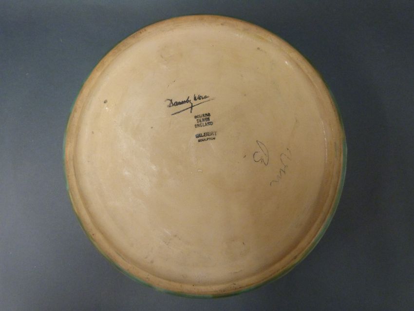 Bourne Denby studio bowl decorated with fish in relief by Donald Gilbert c1930s, diameter 29cm