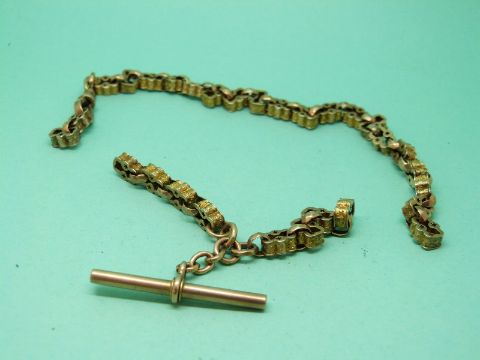 A Victorian 9ct gold watch chain with unusual pierced and textured links, 21.5g