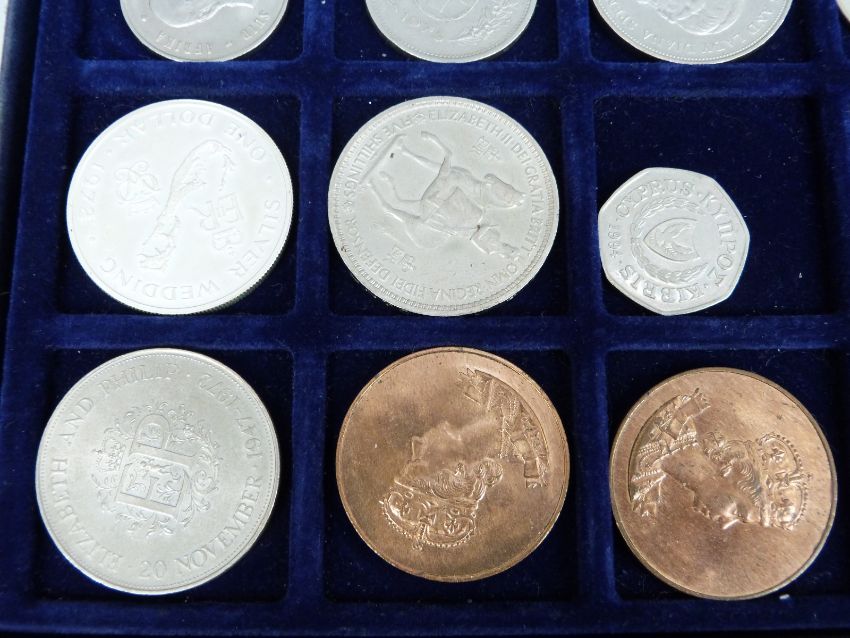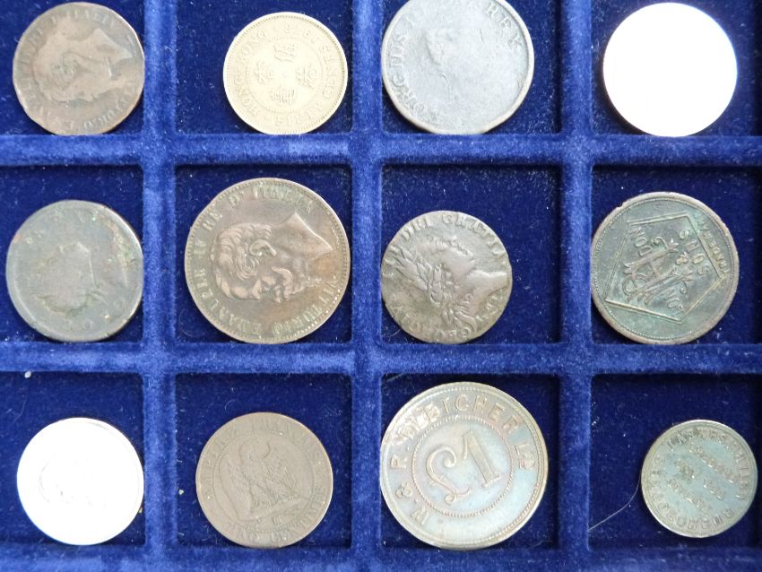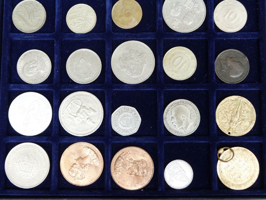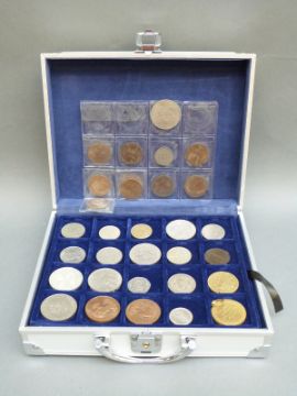 A collector's case containing an amateur collection of UK and overseas coinage to include a Roman example, the others George II onwards, some silver, some tokens etc