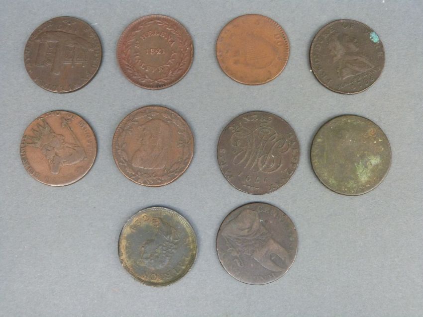 Four late 18thC various Irish Conder half penny tokens together with six others including North Wales, Paris Miners, St Helena etc