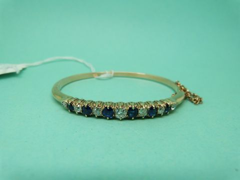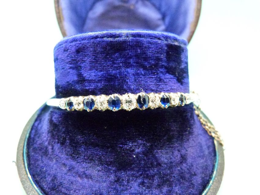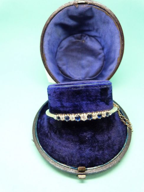 A Victorian bangle set with alternating diamonds and sapphires, in original box
