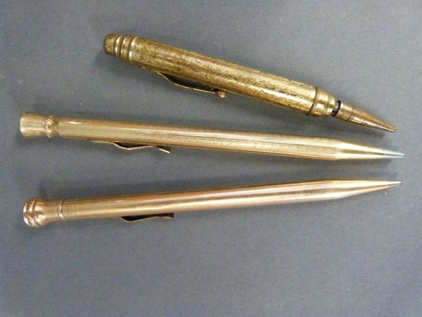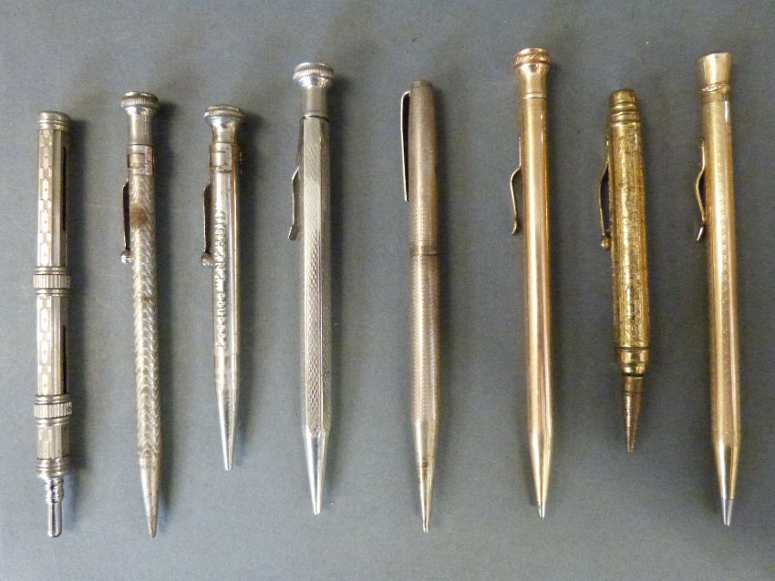 A collection of vintage pens and pencils including a hallmarked silver Yard-o-Led example