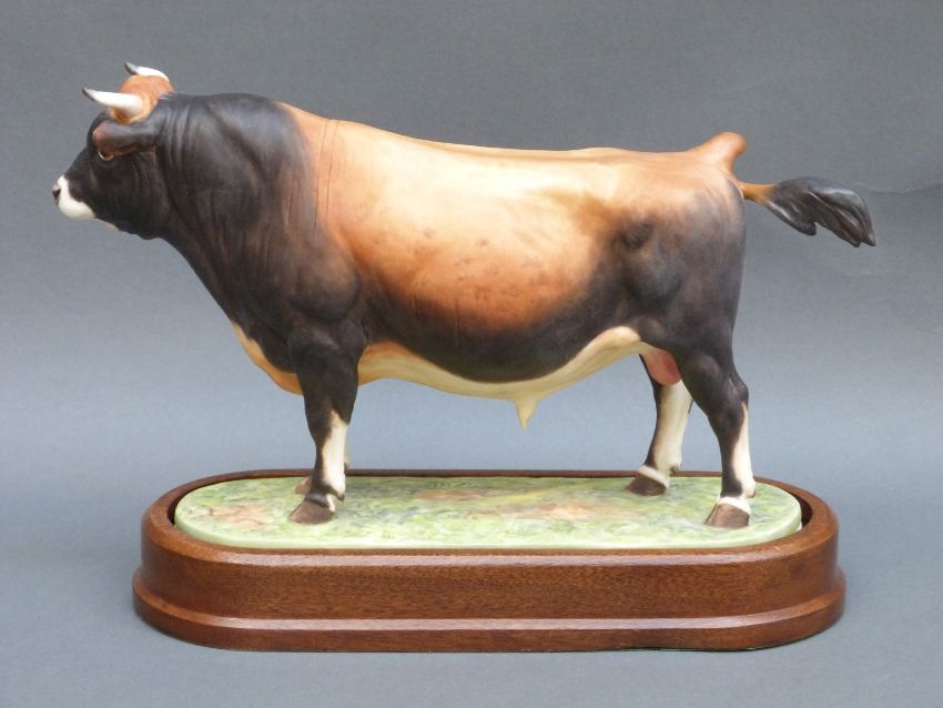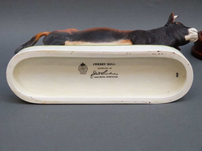Royal Worcester Jersey bull modelled by Doris Lindner, limited edition 281/500, on fiited wooden base, 18cm tall