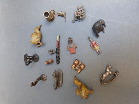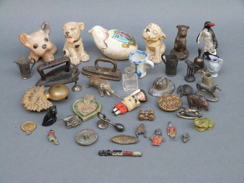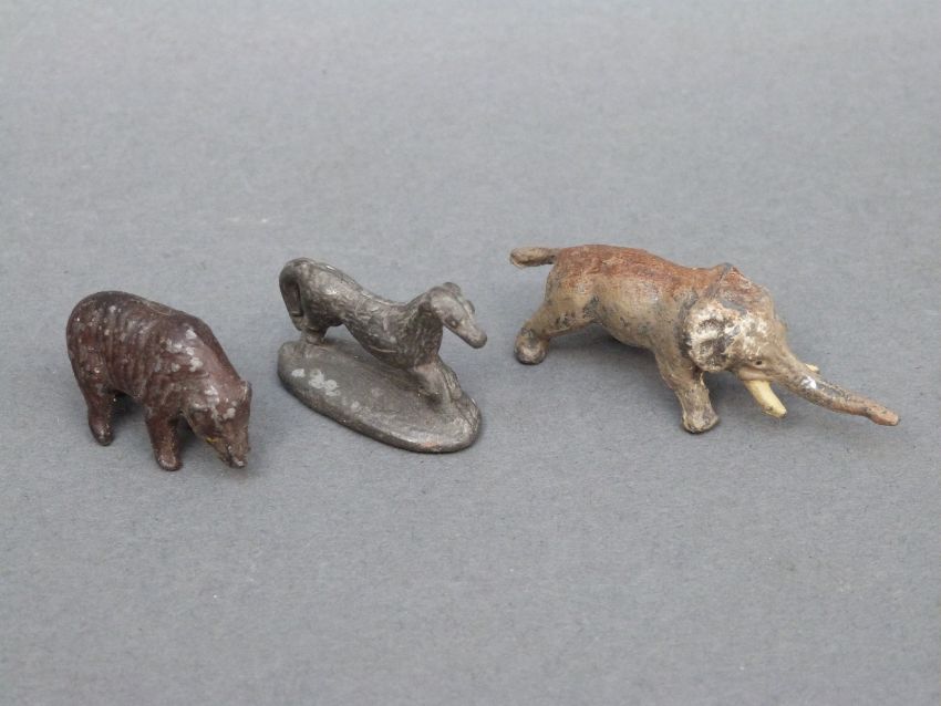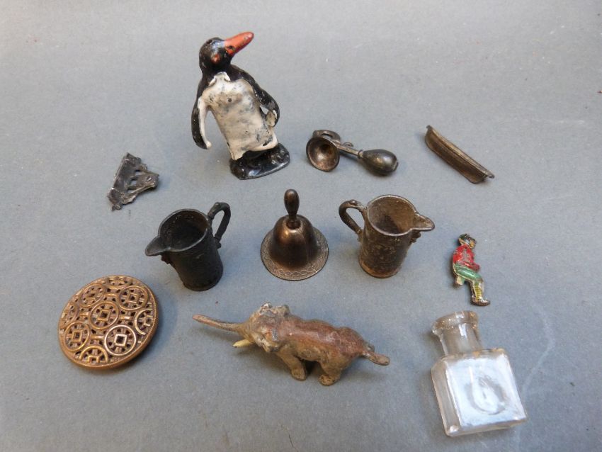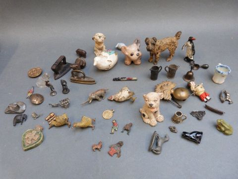A collection of lead animals, other small curios and collectables