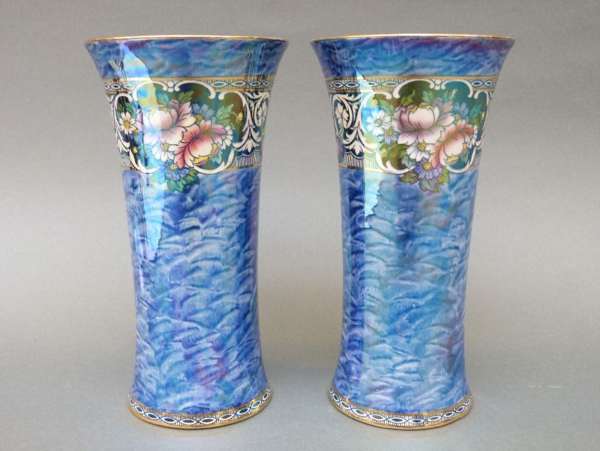 A pair of Newhall lustre ware vases, 20.5cm tall