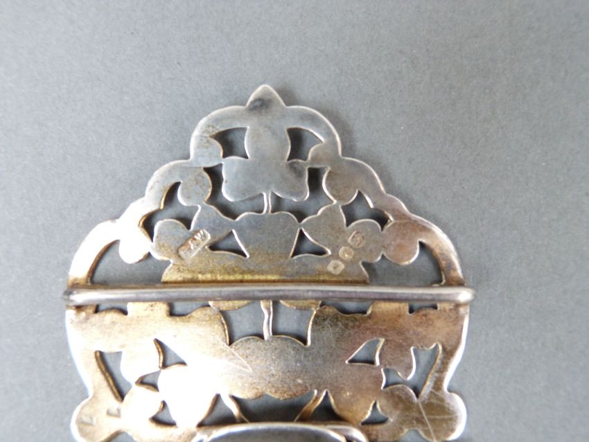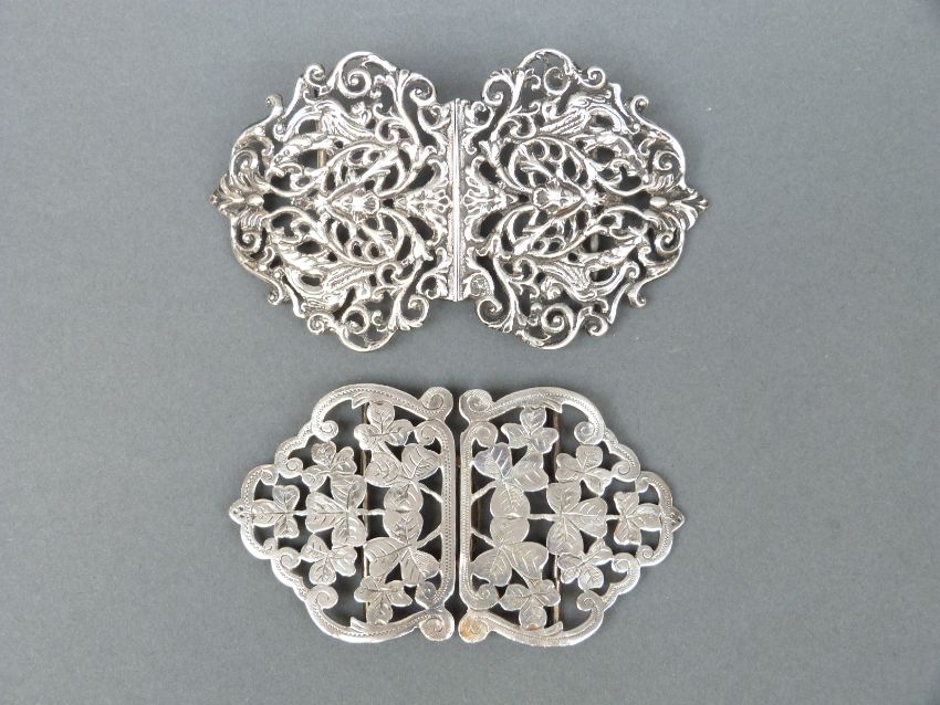 A Victorian hallmarked silver pierced nurse's belt buckle, Birmingham 1899 maker Reynolds & Westwood and a further Edward VII silver nurse's belt buckle, Birmingham 1902, weight of both 100g