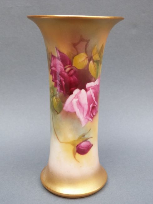 Royal Worcester flared vase decorated with roses, shape G923, green mark to base, 15.5cm tall
