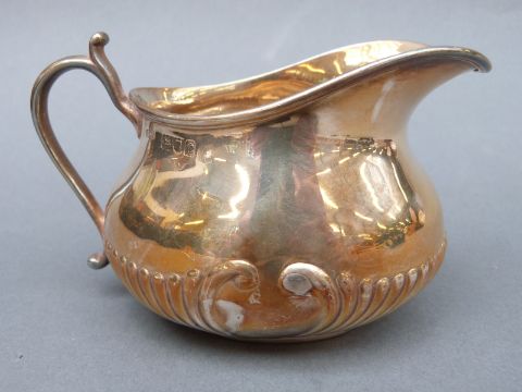 A Victorian hallmarked silver cream jug with fluted base, London 1898 maker Henry Stratford, length 13cm, weight 129g