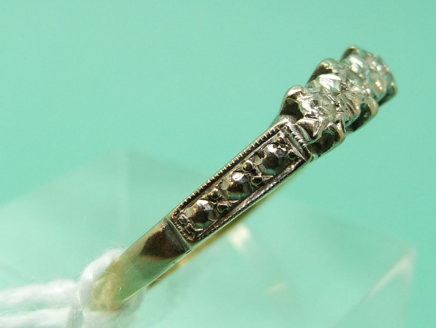 An 18ct gold ring set with three diamonds in a platinum setting (size O), weight 2.88g