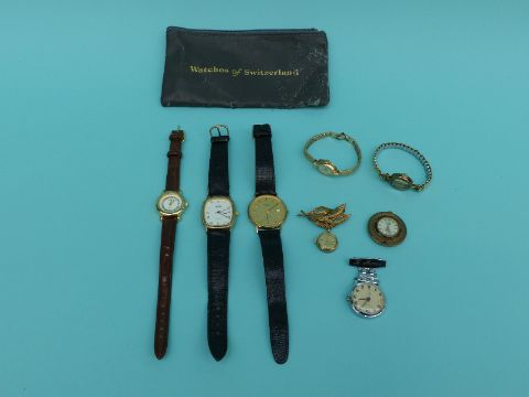 A collection of watches and costume jewellery to include a pearl necklace, a Rotary watch, Ingersoll nurse's watch etc
