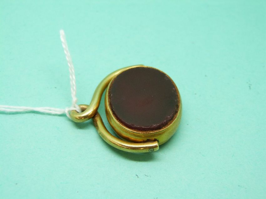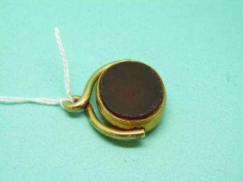 An 18ct gold swivel fob set with blood agate and red agate