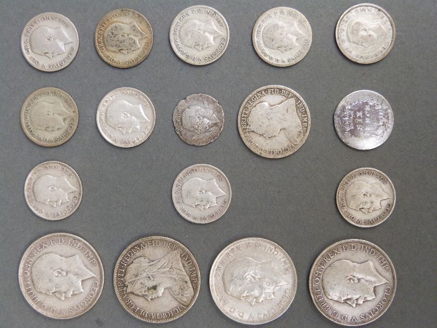 A quantity of pre-1920 silver including gradeable examples (60g) together with 179g of pre-1947 silver coinage