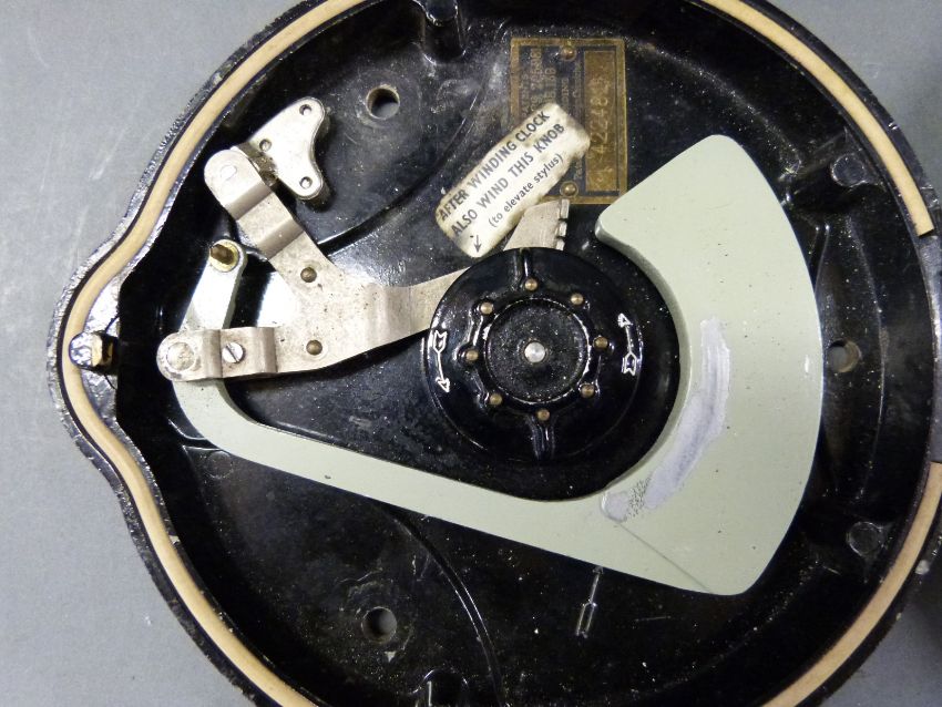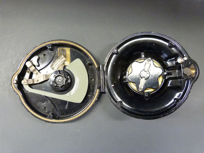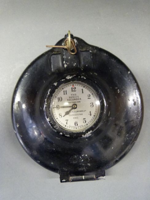 An early commercial aluminium cased Servis Recorder clock, Gloucester, England to Arabic dial