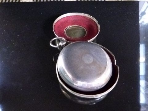 John Moncas of Liverpool hallmarked silver pocket watch with signed fusee movement, Roman numerals, gold hands and outer half hunter dust cover, case diameter 50mm.