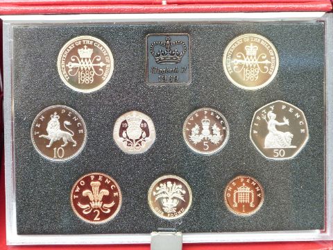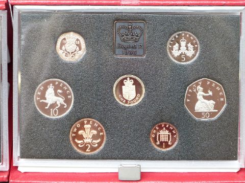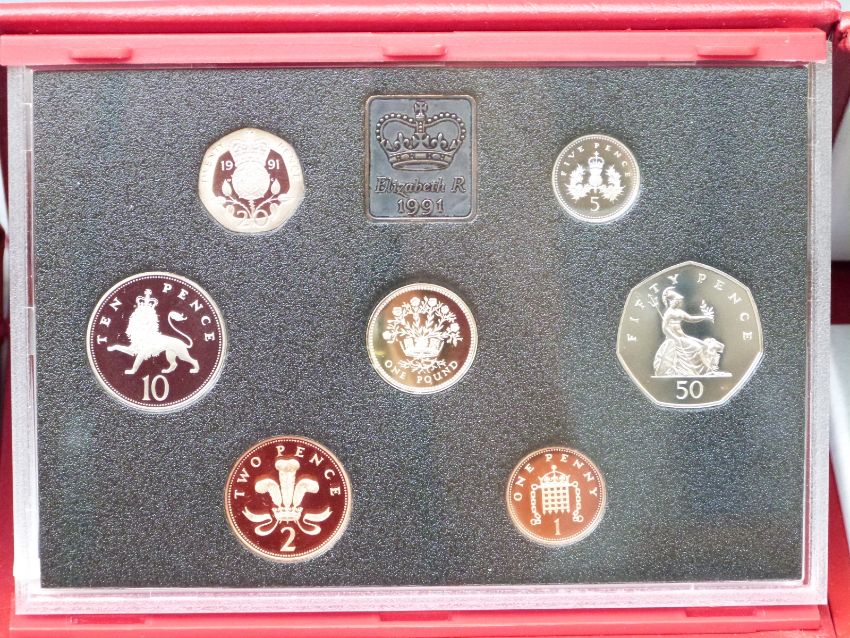 Four Royal Mint deluxe cased coin collections comprising 1988, 1989, 1991 and 1992