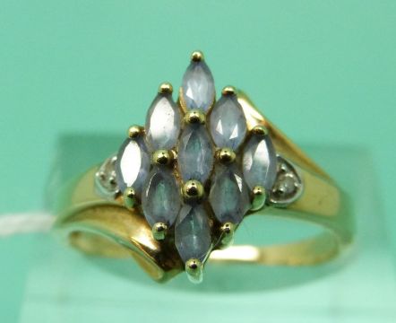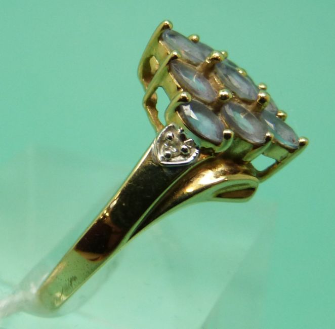 A 9ct gold ring set with quartz and diamonds (size Q)
