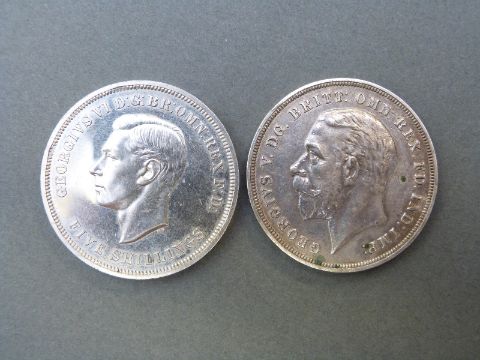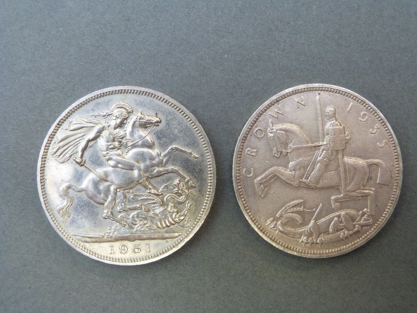 George V 'rocking horse' crown together with a George VI Festival of Britain example