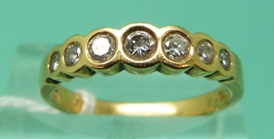 An 18ct gold ring set with seven graduated diamonds (Size O), weight 3.79g