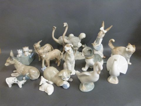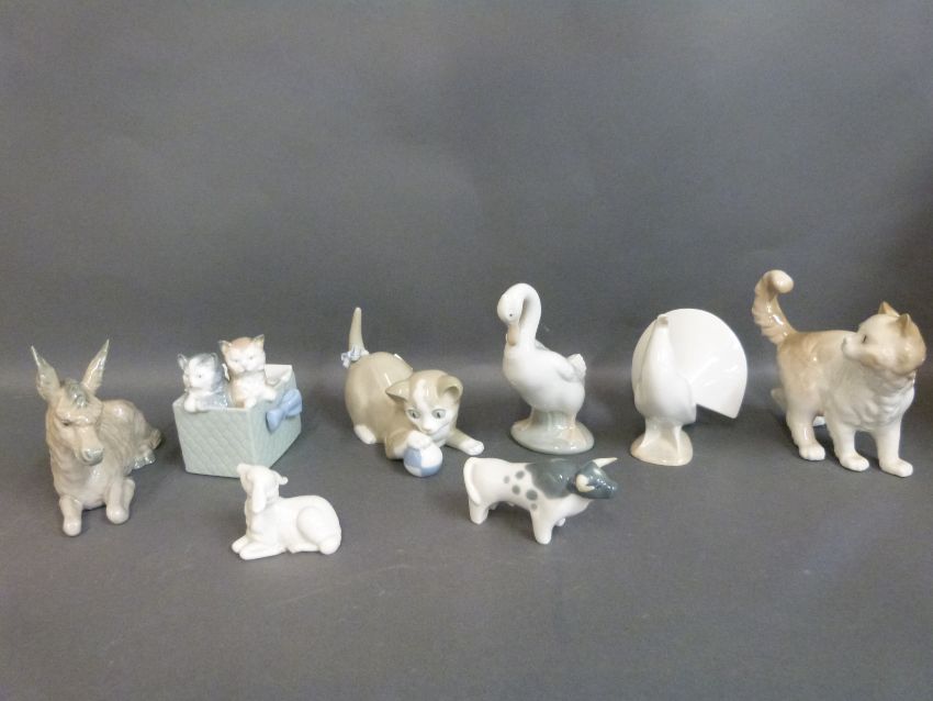 A collection of Nao animal figures including cats, donkeys and ostriches