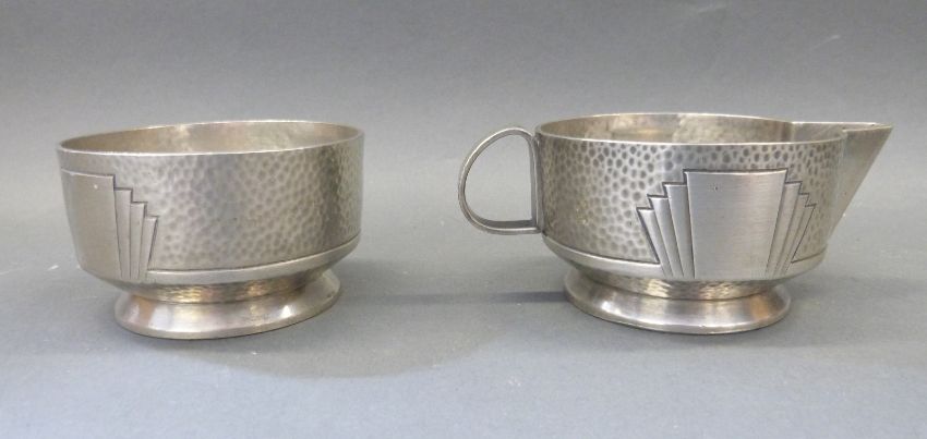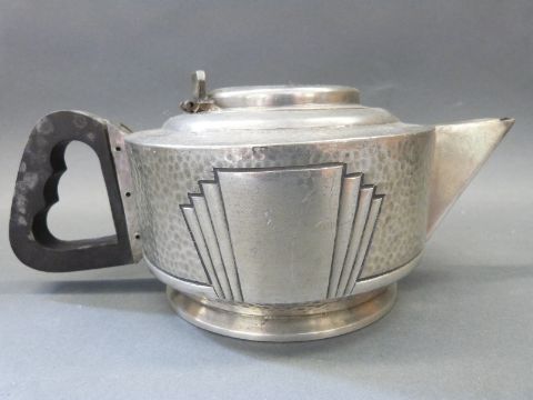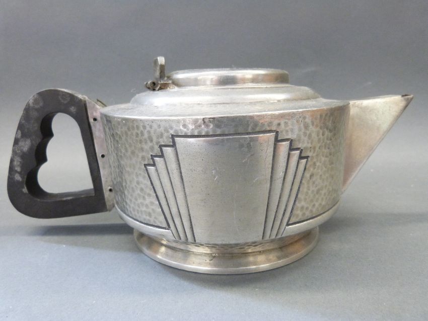An Art Deco pewter Roundhead style tea set
