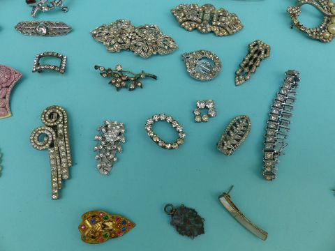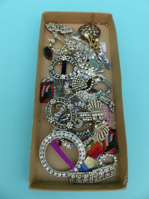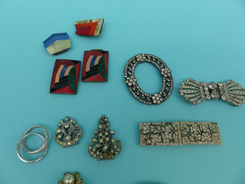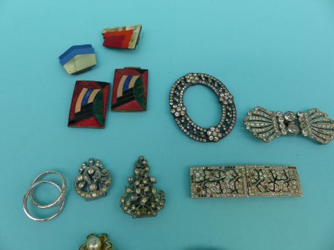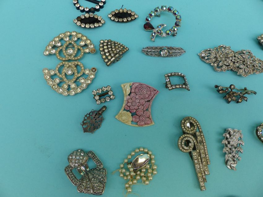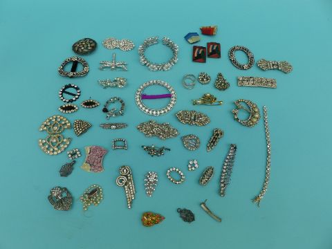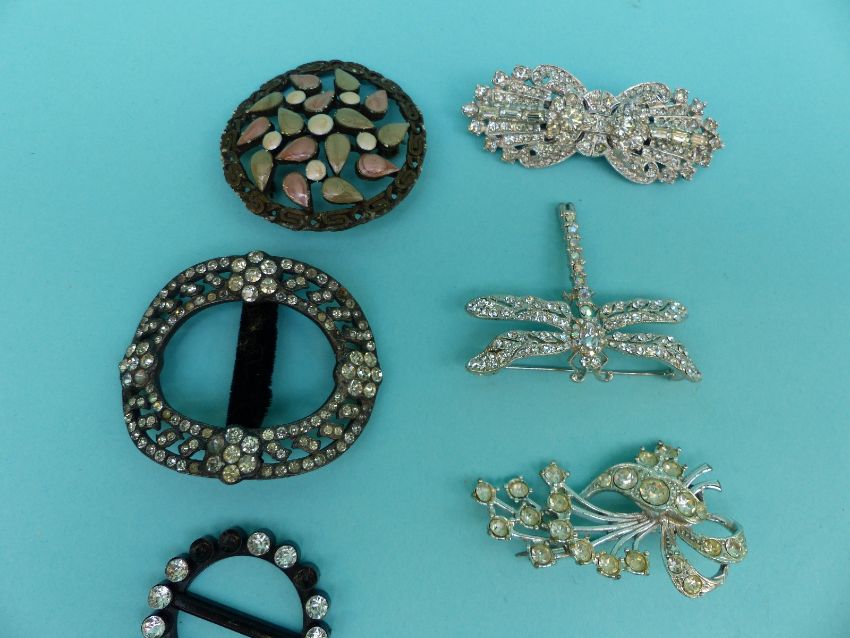A collection of paste jewellery to include Georgian buckle, Art Deco buckle, buckles, brooches etc
