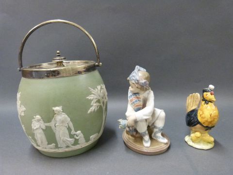 A Lladro figure, Beswick Beatrix Potter figure and a Wedgwood biscuit barrel