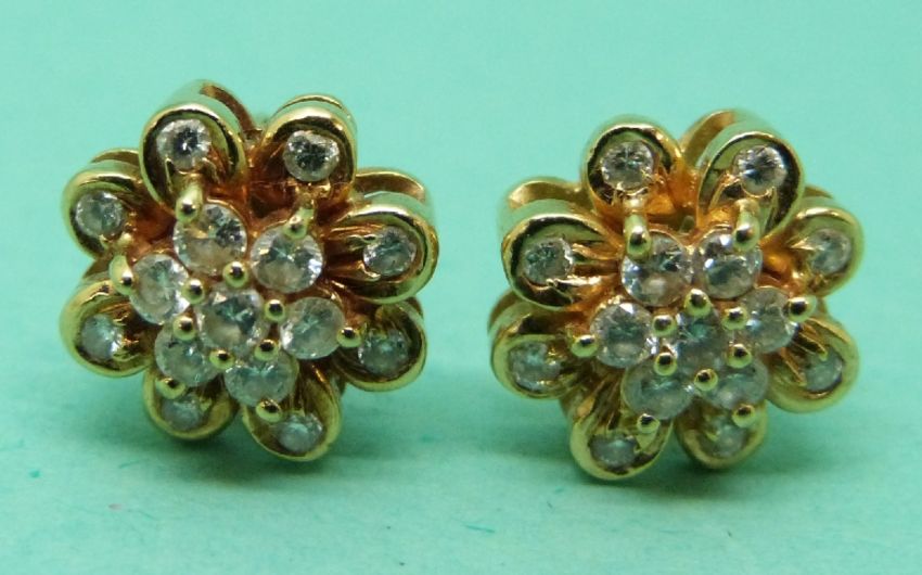 A pair of 18ct gold earrings set with diamonds, weight 4.31g
