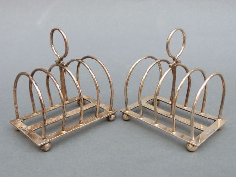 A pair of Edward VII hallmarked silver four-slice toast racks, Sheffield 1904 and 1905, maker Atkin Brothers, length 8.5cm, weight 169g