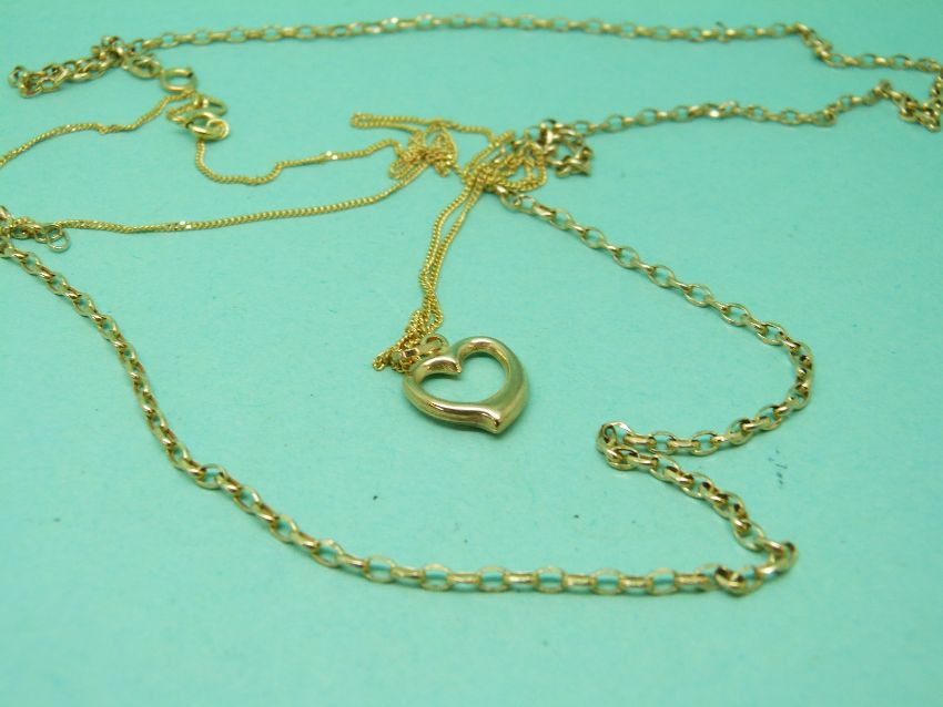 Two 9ct gold chains and a 9ct gold heart pendant (3.2g)