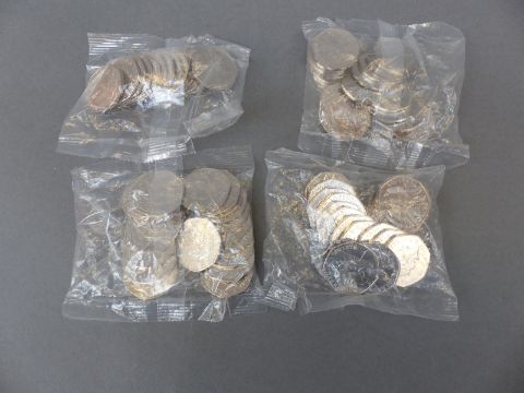 Four sealed bags of Squirrel Nutkin 50 pence uncirculated coins, 80 coins in all