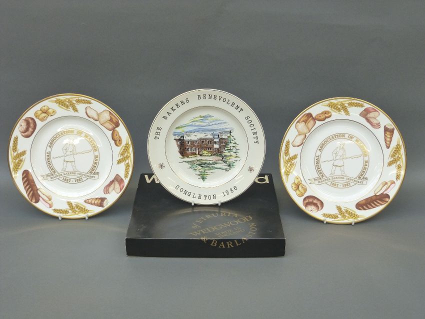 Two Wedgwood limited edition plates, commemorating the centenary of the National Association of Master Bakers, one boxed, together with another for The Baker's Benevolent Society
