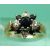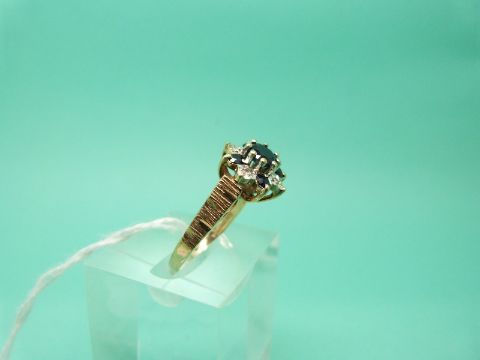 A 9ct gold ring set with a central sapphire surrounded by alternating diamonds and sapphires (Size O)