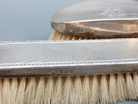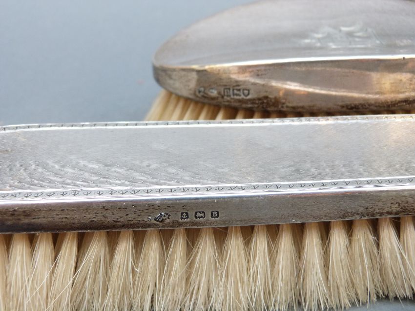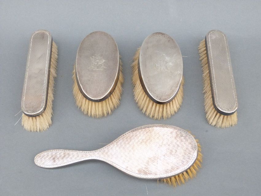 Five hallmarked silver-mounted dressing table brushes