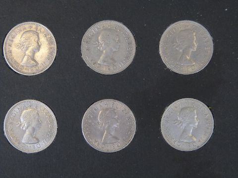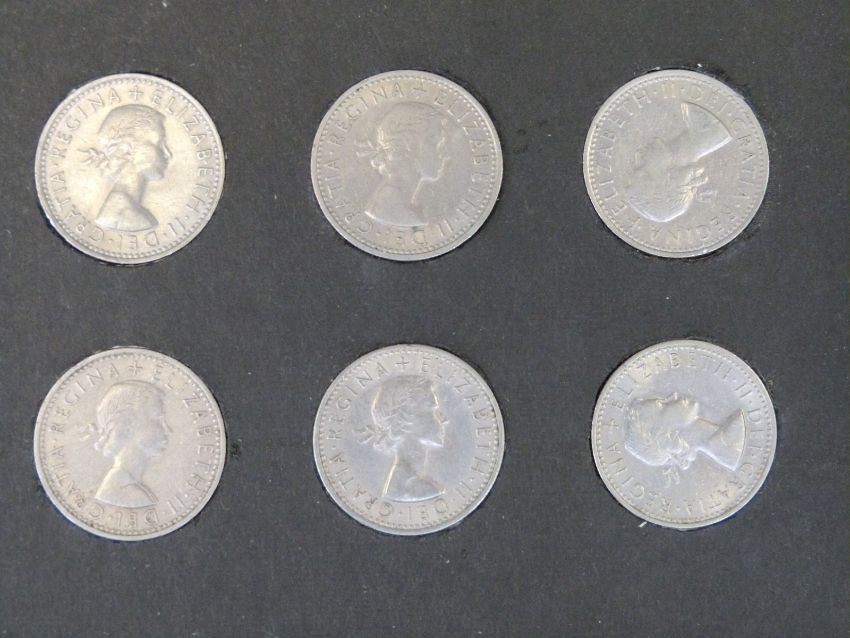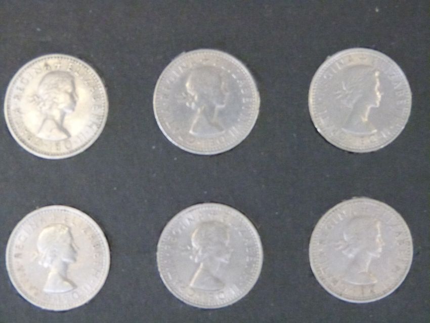 An amateur collection of English sixpences mounted in cards, ranging from 1954-1966, approximately 400 coins in all, VF condition