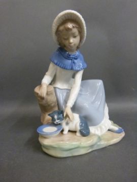 Four Nao figures including sweethearts, girl with kitten etc