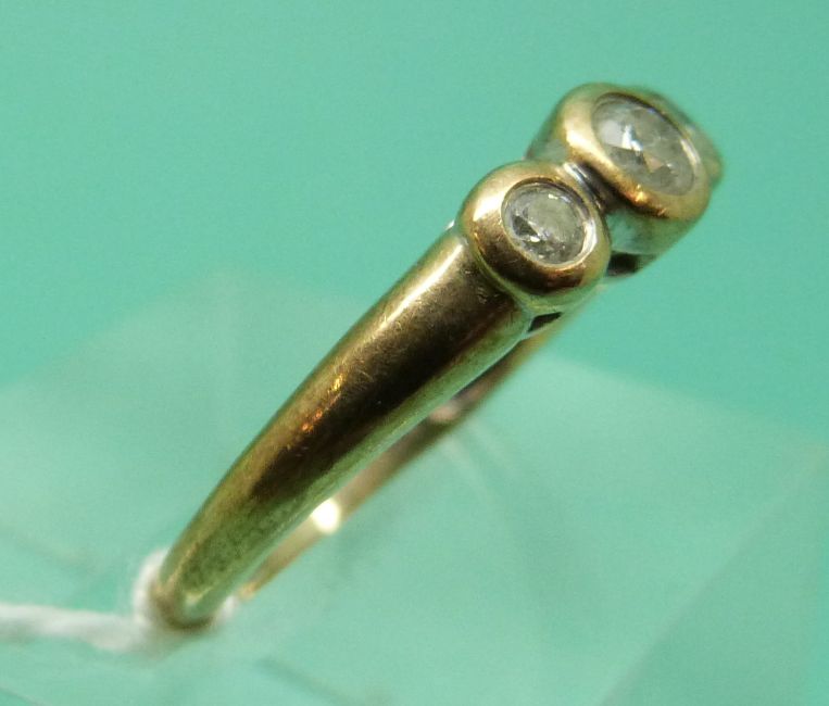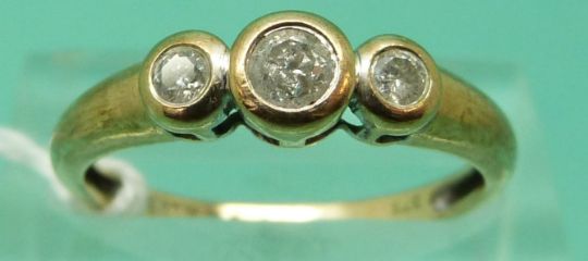 A 9ct gold ring set with three diamonds, total diamond weight approximately 0.25ct (size N), weight 1.69g
